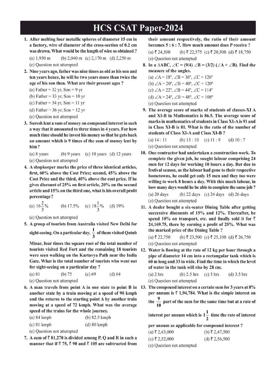 - HCS CSAT Paper II Includes solved papers from 2019 to 2024, plus 5 full-length test series with expert explanations to sharpen your aptitude and reasoning skills.